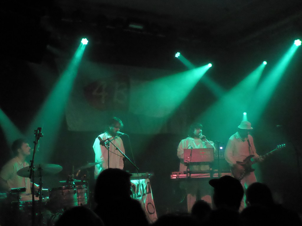 Cas legt dan ook uit dat het concept van de band bestaat uit “bangers en ballads”. Hij en Rocco wisselen lead zang af, waarbij de anderen ondersteunen met achtergrondzang. Vooral in de rustigere ballads heeft het publiek weer eens moeite om stil te zijn en zelfs na herhaaldelijke opmerkingen en verzoeken van de band, zijn er een aantal mensen die moeilijk hun mond even kunnen houden. Erg jammer toch altijd weer en simpelweg vreselijk asociaal en respectloos. Gelukkig weet de band een ontspannen en plezierige sfeer neer te zetten en een uur lang verzorgen ze een boeiend en energiek optreden. Op het einde wordt via een drumcomputer een moddervette beat ingezet en ontstaat een soort geïmproviseerd techno nummer waarop Rocco zijn meest gestoorde moves laat zien, terwijl hij wat kreten in de microfoon roept. Het is een feestelijk einde van dit heerlijke optreden dat naar veel meer smaakt. Die festivalzomer kan me niet snel genoeg beginnen, want daar zal deze band het erg goed kunnen doen.