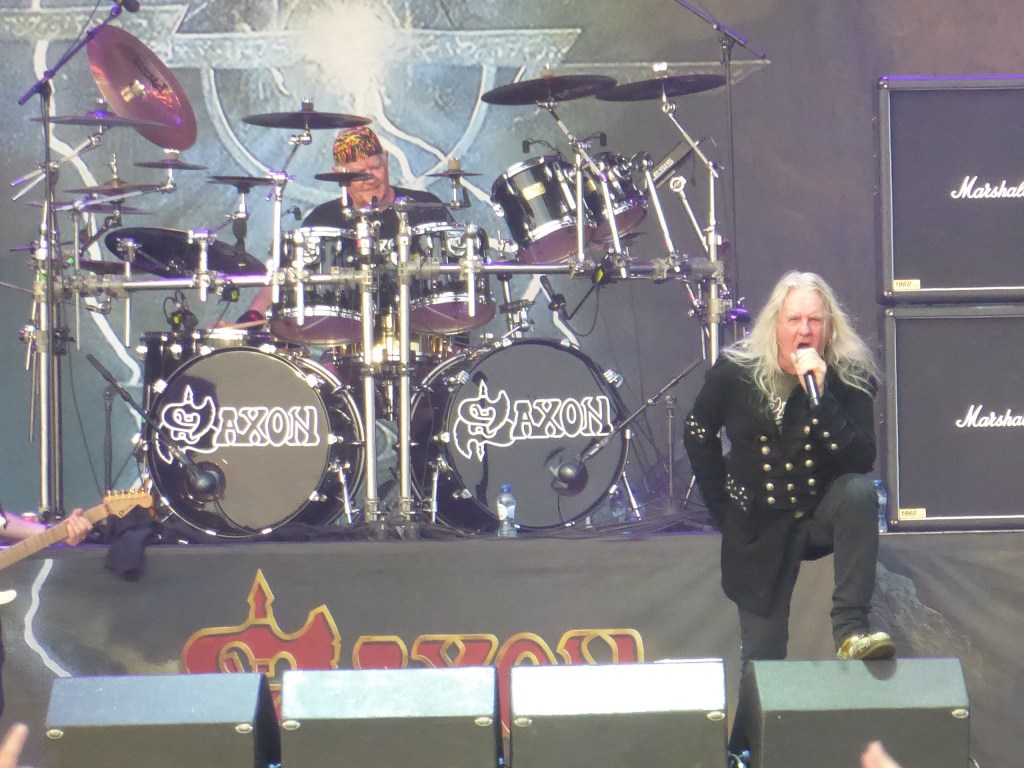 Op het hoofdpodium is weer een oudgediende neergestreken, namelijk Saxon dat inmiddels ook alweer ruim 45 jaar bestaat. Zanger Biff Byford is inmiddels ook alweer 71 jaar en ook hier gaan de jaren tellen. De band heeft een hoog aanzien in de metal wereld en het publiek is gewillig. Maar op de heetste dag ooit gemeten op Graspop is het toch een loom optreden dat maar niet wil ontvlammen. Byford oogt wat traag en er wil maar geen vaart komen in de set. Hierdoor wordt het publiek ook niet echt op gang gebracht, waar ondertussen ook de slijtage van al 3 dagen festival begint toe te slaan. Bij mij in ieder geval wel en we besluiten nog maar eens even een stukje rust te pakken door ergens een zitplaats op te zoeken.