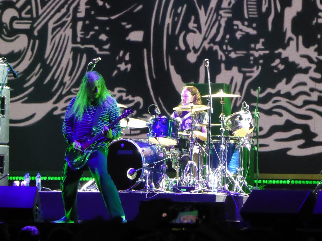 Ook Deftones moest hun tour een paar keer afblazen, waardoor ze hun laatste plaat Ohms niet konden voorstellen. Dat vind ik wel een erg lekkere plaat en kijk er erg naar uit om ze weer eens op een podium te mogen aanschouwen. Ik heb dan ook erg veel zin in dit optreden op het hoofdpodium hier bij Graspop. Helemaal lekker komen ze niet uit de startblokken, in ieder geval qua geluid, want de balans en mix lijkt behoorlijk zoek. Langzaam wordt dit beter, maar helemaal goed wordt het niet. Daardoor kost het me moeite om er in te komen, maar uiteindelijk lukt dit toch redelijk. Zanger Chino Moreno is niet altijd “spot on” maar ondersteund door zeer fraaie visuals zet de band toch een prima optreden neer. De band gaat soepeltjes door de setlist heen en schakelt zonder al teveel oponthoud tussen de nummers. Het is geen onvergetelijk optreden en buiten Moreno is de rest van de band redelijk onopvallend. Het is allemaal heel degelijk, maar ik zou ze graag weer eens zien vlammen.