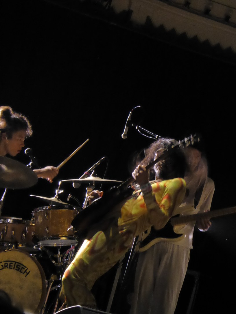 Bij aanvang zijn er wat technische problemen met de gitaar van Tomo Katsurada, die dit koortsachtig probeert te repareren. Er komt een roadie mee kijken en gelukkig wordt het na een klein oponthoud opgelost en kunnen we op weg. Hun muziek heeft een rustige, serene kant met nummers die je al meanderend in trance brengen. Hiermee beginnen ze hun set en bouwen dit langzaam uit naar een wildere kant waarbij de gitaren steeds luider gaan klinken. Grote gemene deler is het uitgesponnen karakter van hun muziek, waarbij je langzaam naar hogere sferen getild wordt.