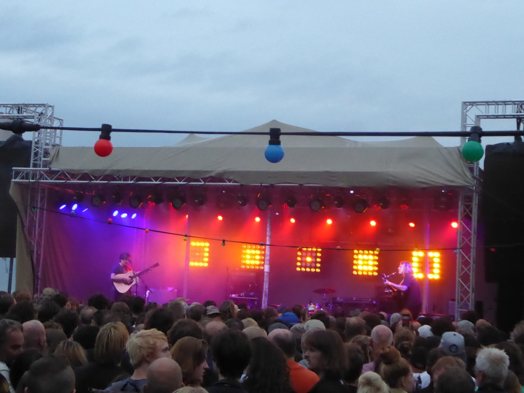 Meatbodies verzorgen het voorprogramma en hun psychedelische garagerock sluit prima aan bij de hoofdact. Niet verwonderlijk want zanger Chad Ubovich speelde ooit samen met Ty Segall, dus er vond destijds vast enige kruisbestuiving plaats. Het is langzaam drukker geworden, maar er is nog genoeg plaats over bij het kleine podium aan zee. Jammer genoeg is de buitenlokatie afgeschermd door hekken met zwarte schermen, waardoor de zee niet zichtbaar is. Hierdoor heeft het niet dezelfde zomer- en strandsfeer als vorige maand bij Woodstock ’69, mede ook door het minder fraaie weer.