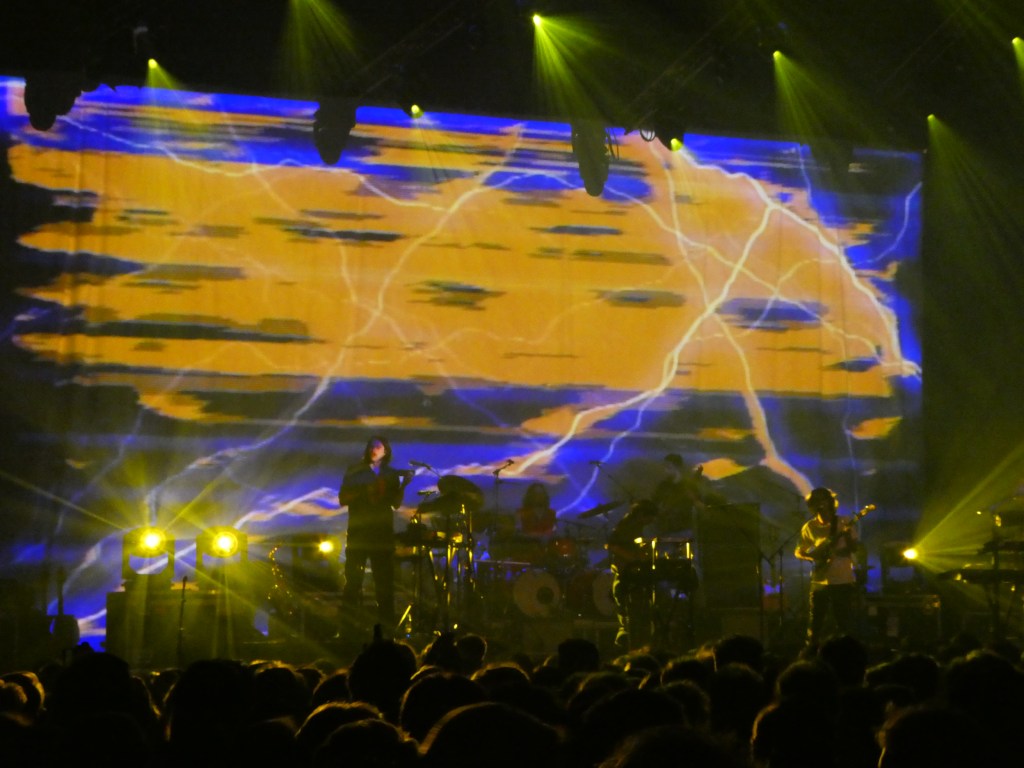 De dames van Los Bitchos spelen het voorprogramma en ook dat wil ik niet missen. Ik zag ze vorig jaar op Vlieland en dat was toen een leuke kennismaking. Ook dit keer weten de Engelse dames het publiek voor zich te winnen met hun dansbare en voornamelijke instrumentale nummers. Wanneer er met de handjes meegedanst mag worden, steken de meeste mensen dan ook enthousiast hun handen in de lucht. Op deze manier zit de stemming er al vroeg in en lijkt iedereen helemaal klaar voor het Australische collectief.