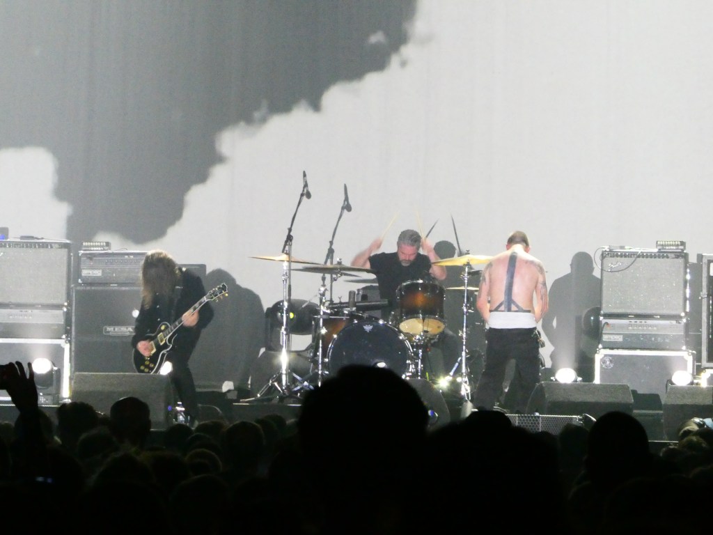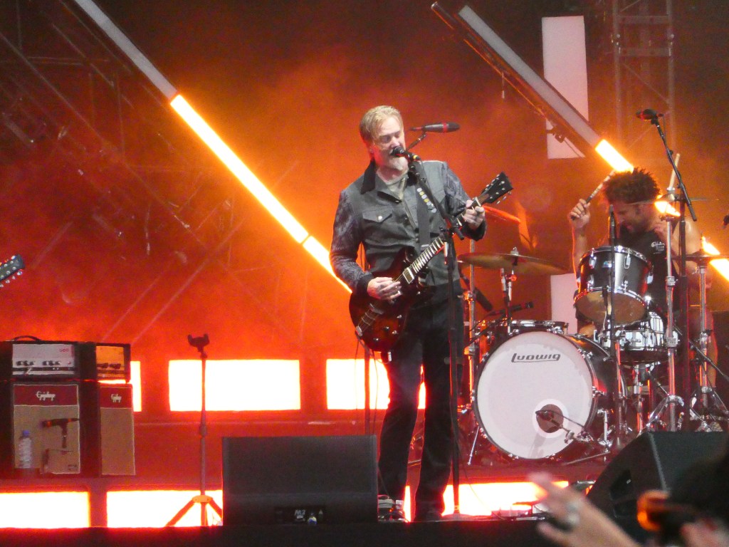 Eén van de redenen dat we voor deze dag hebben gekozen is om de mannen van Queens of the Stone Age weer eens aan het werk te zien. Het heeft even op zich laten wachten, maar er ligt een nieuwe plaat In Times New Roman in de winkels en die klinkt ouderwets goed. Zanger Josh Homme heeft een moeilijke periode achter de rug en liet op Pinkpop en Glastonbury zien anders in het leven te staan. De band wandelt dan ook het podium op onder de klanken van Peggy Lee’s ‘Smile‘. Homme maakt nog even duidelijk dat er vooral gelachen moet worden en de band gooit direct hun misschien wel grootste hit erin ‘No One Knows’. Wat volgt is een meedogenloos goede set van de band, waarbij alle bandleden uitermate scherp voor de dag komen. Opvallend hoe Homme, die nog wel eens behoorlijk norst op het podium kon staan, inderdaad regelmatig een lach laat zien nu positieve vibes uitstraalt. Nu en dan kijkt hij wat dromerig schuin omhoog en bedankt het publiek regelmatig voor hun enthousiasme. Het is ook niet zo moeilijk om enthousiast te zijn bij deze geweldige groove machine, die vanavond effectief over ons heen dendert. De krachtige grooves zijn op zich redelijk zwaar maar klinken toch licht genoeg om lekker op te dansen. Dat doet de band deugd en zo ontspannen en vrolijk heb ik ze nog niet vaak gezien. Net als een aantal jaar geleden zien we Spiderman op het publiek surfen en een lachende Homme nodigt de superheld op het podium uit. Het is tekenend voor de sfeer vandaag waarbij er inderdaad veel gelachten wordt en er alleen maar vrolijke gezichten te zien zijn. Uiteindelijk eindigt de band ook nog eens met een meedogenloze uitvoering van ‘Songs For The Dead’, heerlijk!