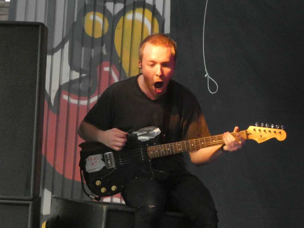 Ook het drietal van het Tilburgse Mood Bored heeft een goede sound te pakken. De muzikanten van de Rockacademie willen met aanstekelijke rock nummers de zon doen doorbreken in donkere tijden. Vandaag lukt dat aardig ondanks het wisselvallige weer. De band is overduidelijk nog jong en kan dan ook niet dit publiek omver blazen, maar de liedjes klinken veelbelovend. Met een flink aantal uren op het podium en in het oefenkot heeft deze band genoeg potentie en ruimte om door te groeien. Hopelijk zie ik ze dan weer terug en de planken uit het podium spelen. Nu blijft het daar net allemaal te braaf voor. We gaan eens kijken bij Blue Bendy op het andere podium. Hun muziek is een wat meer ingetogen combinatie van Squid en Ought, maar lijkt juist de essentie van die bands te missen. Wat overblijft is een verwaterde versie van die muziek wat snel gaat vervelen en niet los wil komen.
