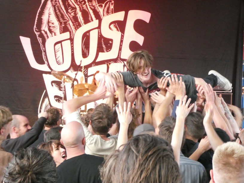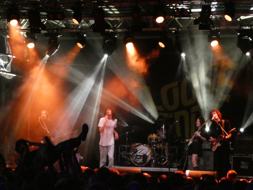 Bij het inluisteren was ik niet echt overtuigd van het Australische Cable Ties, die redelijk doorsnee punknummers combineren met regelmatig redelijk nare zang van zangeres Jenny McKechnie, vooral in de hogere regionen. Live blijkt dit een stuk beter uit te pakken en levert het een leuk optreden op. Zelfs als McKechnie haar versterker opblaast, laat de band zich niet uit het veld slaan en lost de gedwongen onderbreking op een leuke manier op. Inderdaad wil McKechnie’s stem soms wel heel schel gaan klinken maar gelukkig zingt ze ook vaak wat lager, wat ik een stuk beter kan verdragen.