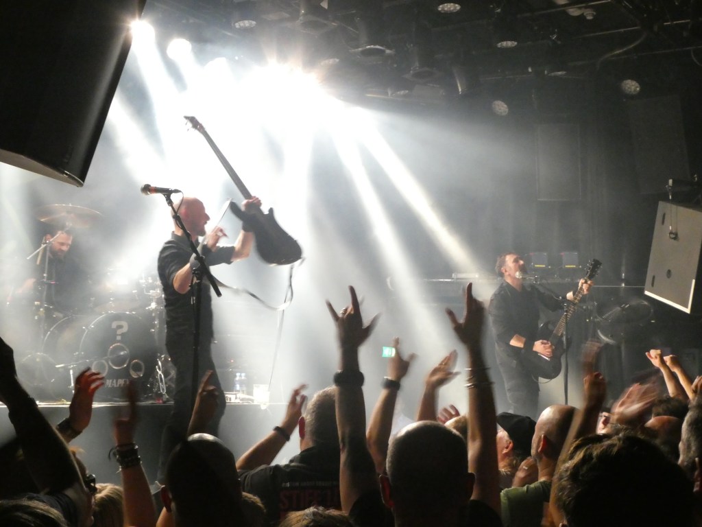 Tegelijk met die punk attitude van de band komen ze daarom altijd hard binnen, maar zoals dat bij Therapy? gaat valt er ook genoeg te lachen, ook door de mannen zelf die altijd met een grote grijns op het podium staan. Die combinatie is nu zo aanstekelijk waar ik een enorme zwak voor heb en samen met mij die ander honderden mensen vanavond die uit hun dak gaan bij al dit heerlijk rockgeweld. Dus laat niemand zich uit het veld slaan als Andy Cairns zijn gitaar het begeeft aan het begin van, hoe toepasselijk, ‘Die Laughing’. Bassist Michael McKeegan en drummer Neil Cooper spelen dan maar een dub versie van het nummer om de tijd te doden. Na een knallende afsluiter met ‘Nowhere’ is er dan ook niemand meer hier vanavond die niet met een enorm goed gevoel naar huis gaat.