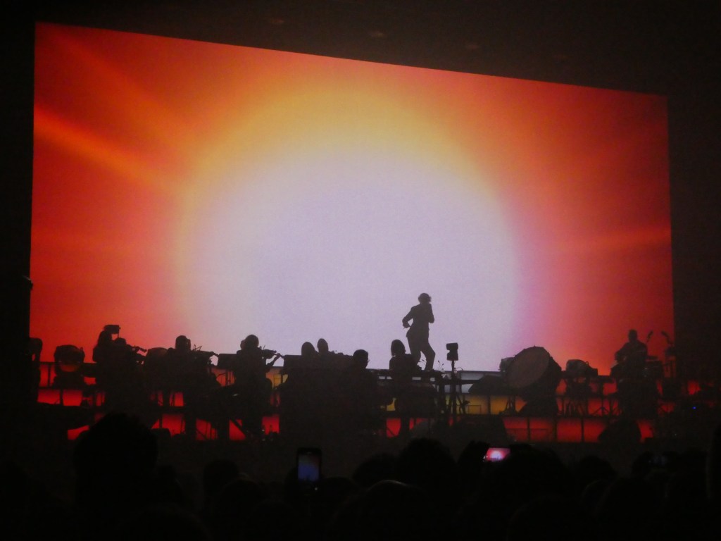 Er hangt een groot gordijn vooraan het podium wanneer we de stem van Cocker horen. Als het opengaat zien we een stijkorkest aan de ene kant en de rest van de band aan de andere. Een grote volle maan prijkt op het scherm wat de hele achterkant van het podium vult. Langzaam zien we Cocker opstijgen de volle maan in terwijl het eerste nummer ‘I Spy’ ingezet wordt. Hij daalt de verlichte trap af die het decor vormt waarin de muzikanten spelen. Het is een ijzersterke opening van een concert dat alleen nog maar beter zal worden. Centraal daarin de rol van Cocker die charmant en met veel humor het publiek bespeelt. De band speelt geweldig en de toevoeging van de strijkers tilt de liedjes naar een nog hoger niveau.