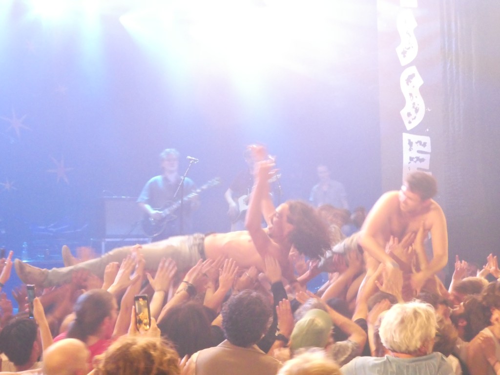 Ik haak dus aan bij Pigs x7 die al bezig zijn aan een verschroeiend optreden in de Max. Hun mix van stoner en metal klinkt overdonderend en overtuigend. Dat komt niet op zijn minst door zanger Matthew Baty die in korte broek en op blote voeten een indrukwekkende verschijning is. Zijn bulderende zang wordt ondersteund door zware riffs die strak en met veel overgave gespeeld worden. Dat dit gewaardeerd wordt is duidelijk te merken aan de zaal die tot de laatste noot gevuld blijft.