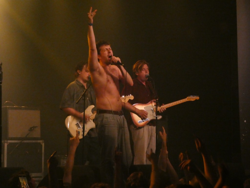 In de Max is het tijd voor het ultieme eindfeest van dit festival met niemand minder dan het engelse shame dat inmiddels een behoorlijk gevestigde naam aan het worden is. Toch lijkt de zaal minder vol dan eerder op de dag, maar misschien denk ik dat maar. Het maakt het enthousiasme van de band er niet minder om, wat ook af is te lezen aan het gezicht van zanger Charlie Steen. Het hele concert heeft hij een vrolijke blik in de ogen en lijkt hij het erg naar zijn zin te hebben. Ook zij zijn bezig aan een nieuw album en spelen weinig, wat vast reden is waarom ze vanavond zo lekker fel en vol vuur spelen. Bassist Josh Finerty sprint en buitelt zoals altijd heen en weer over het podium. Op een gegeven moment maakt hij ook een onbedoelde buiteling maar dat deert hem en de band verder niet. Af en toe moet hij dan ook even flink uithijgen achter zijn microfoon.