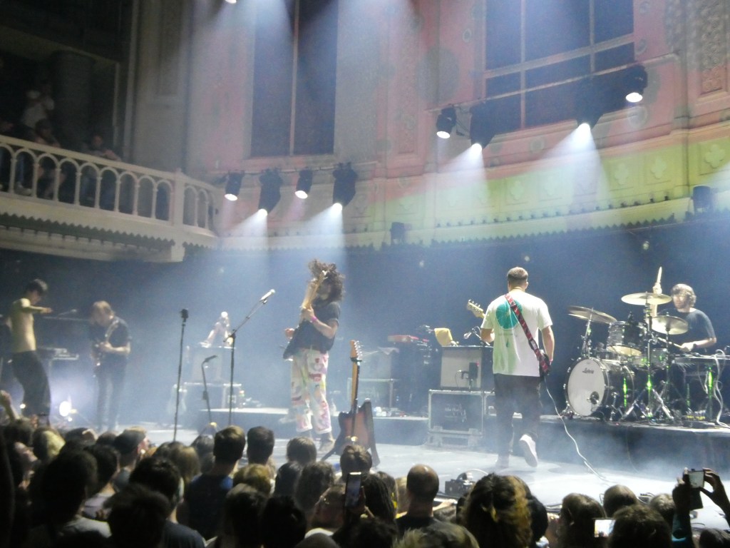Maar ze houden het altijd dansbaar, zodat de fans compleet gek worden en er een energie losbarst die zijn weerga niet kent. Stagedivers duiken onbevreesd het publiek in en als dat soms te onbesuisd gaat, controleert bassist Wayan Biliondana even of iedereen vooraan nog in orde is. McEwan laat meerdere malen weten dat dit hun verwachtingen heeft overtroffen en dit toch het beste feestje ooit is. En wat wil je dan ook met nummers als ‘Lava Lamp Pisco’, ‘Found God In A Tomato’ en ‘Cornflake’. Psychedelic Porn Crumpets is een muzikale achtbaan van het heftigste soort. Degene die dit aandurven werden vanavond getrakteerd op een zinderend optreden vol energie en muzikaliteit waar Paradiso nog wel een tijdje van zal natrillen.