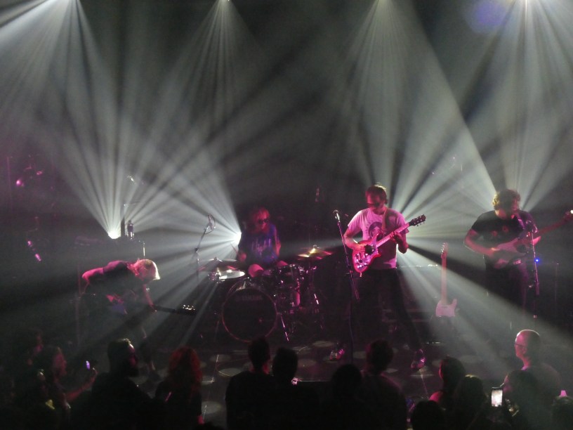 Dat is erg goed gevonden en geeft het optreden tussen alle snellere nummers veel variatie. Ze worden soms aan elkaar gelijmd waardoor het niet altijd duidelijk is of je nu drie verschillende nummers hebt gehoord of een lang nummer als ‘Suffer The Joy’ dat meerdere keren van gedaante wisselt. Uiteraard is er genoeg ruimte voor de typische fuzzy gitaren die samen met de vele galm de nummers dat psychedelische karakter geven. Het blijkt ook nog eens de verjaardag van de bassist te zijn en de band kan zijn lachen niet inhouden als ze “lang zal hij leven” horen. Veel nummers zijn lekker recht voor je raap en vooraan wordt er dan ook wild gedanst. Een stage diver schat de hoeveelheid mensen vooraan wat te hoog in, maar gelukkig loopt dat zonder kleerscheuren af. Er volgt een toegift van een paar nummers en na een uurtje is het dan gedaan en kan er even bijgekomen worden van dit heerlijke optreden van een band die ik vanaf nu goed in de gaten ga houden.