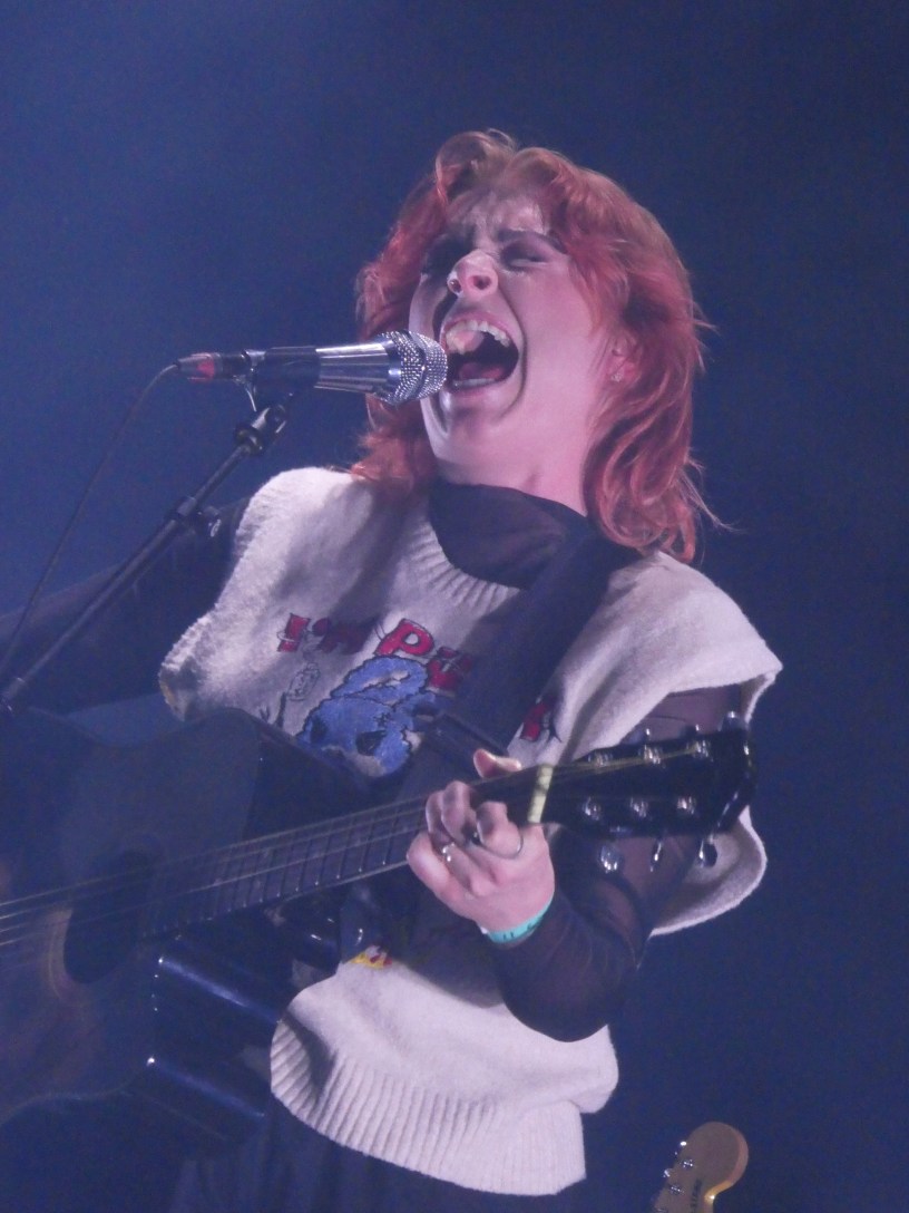 Eerder dit jaar zag ik SPRINTS in de Tolhuistuin waar ze samen met English Teacher een geweldig fijne concertavond verzorgden. Destijds was het debuutalbum Letter to Self net uit, dat boordevol energiebommetjes staat. Vanavond is de Ierse band terug en ditmaal in de grote zaal van de Amsterdamse poptempel die behoorlijk vol staat. Frontvrouw Karla Chubb laat weten dat ze zo’n beetje non-stop op tour zijn dit jaar en dat lijkt zich terug te betalen in een mooie opkomst.