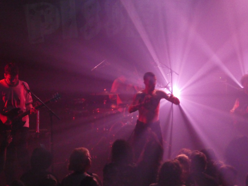 En we gaan nog even door met Enola Gay uit Belfast, die punk en noise vermengen met hiphop rap en vocalen. Dit werkt erg goed en de muziek is donker en opzwepend. Het heeft soms iets weg van Rage Against The Machine in de bozere nummers. Ik weet niet of de band vernoemd is naar het vliegtuig dat de atoombom op Hiroshima liet vallen of naar het nummer wat OMD er over maakte, maar dat doet er niet toe. De band is niet bang zich uit te spreken en er straalt genoeg positieve energie van deze band af. Met hun toch wel originele sound krijgen ze de zaal flink mee, waar wild gedanst en gesprongen wordt.