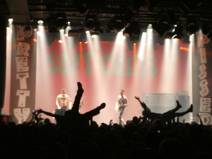Zo zou KEG er goed aan gedaan hebben om in de “Up” een kijkje bij Soapbox te nemen. Al voordat hij maar iets gezongen heeft duikt zanger Tom Rowan het publiek in en sloopt daarmee direct zijn kabel, waardoor hij in allerijl snel de microfoon van gitarist Angus Husbands moet pakken om de eerste teksten uit te schreeuwen. Als een tornado raast wildebras Rowan over het podium terwijl het zweet van hem afdruipt. Met uitgesproken teksten is dit punk zoals het bedoeld is: boos en met heel veel energie. Stampend zingt hij zijn frustatie van zich af over het OV in hun thuisstad Glasgow, met name de bus, in ‘Private Public Transport’. Ook de gitaar heeft op een gegeven moment problemen, misschien wel omdat Husbands af en toe over het podium kruipt, en de bas moet er op een gegeven moment ook aan geloven. Gelukkig heeft de band een roadie die met misschien nog wel meer energie als een roadrunner over het podium stuift. Een optreden met ongelooflijk veel ballen in de allerhoogste versnelling. Soap Box laat iedereen naar adem happen vanavond.
