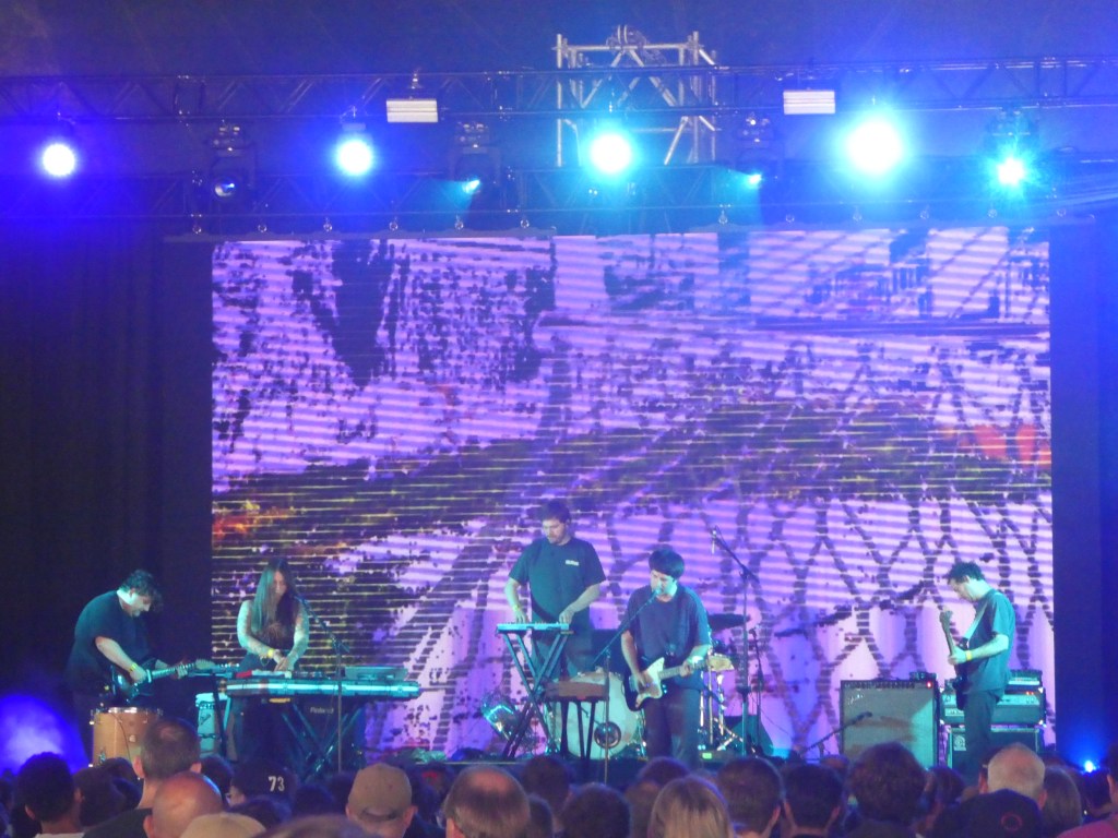 We zijn wel op tijd voor Dummy die in de Secret hun psychedelische shoegaze laten klinken met fraaie psychedelische abstracte visuals als backdrop. Het is wel wat vroeg op de dag voor het publiek om zich nu al in een roes mee te laten voeren. De band weet wel degelijk een goede set neer te zetten en speelt geconcentreerd en overtuigend, al ogen ze wel wat statisch. Op een tijdstip laat op de avond, met de nodige biertjes in het lijf was dit nog beter uit de verf gekomen.