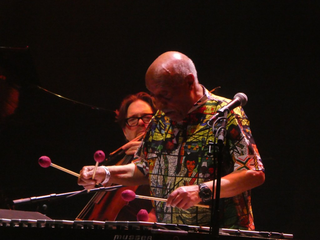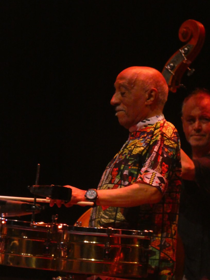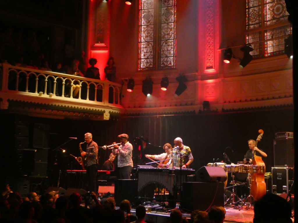 De oude meester klinkt niet meer zo vitaal en soepel als in zijn beste jaren en ook zijn spel is niet meer zo virtuoos. Gezien zijn leeftijd is dat wellicht niet zo verwonderlijk en het blijft toch mooi om deze legende live te mogen zien spelen. De enkele keer dat hij een stukje solo op zijn orgel of op de percussie instrumenten speelt, klinkt met flarden nog steeds zijn unieke talent en muzikaliteit. En gelukkig heeft hij een fantastische band om hem heen, die met veel gevoel en overgave een levendige set spelen. Stuk voor stuk krijgen ze de tijd om te soleren en doen dat met veel overtuiging. Dat is voor de liefhebber echt smullen en ook op het podium zie je regelmatig de andere muzikanten met veel bewondering naar de op dat moment solerend muzikant kijken.